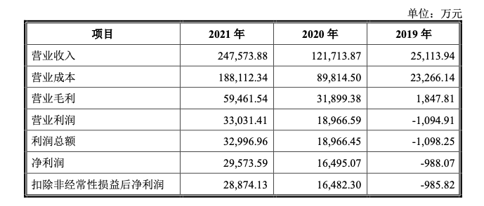 2019年至2021年,中无人机净利润分别为-988.07万、1.65亿、2.96亿;扣非净利润分别为-985.82万、1.65亿、2.89亿。