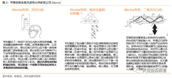 早在2010年便不断收购与 VR 和 AR 相关的技术以及企业,进行 AR/VR 设备的专利布局,包括但不限于近眼显示、虚拟显示传感器、虚拟显示感知交互技术、虚拟显示抬头显示导航(HUD)及其他导航等相关专利,而且苹果2018年还收购了AR 眼镜专用镜片的初创公司 Akonia Holographics。