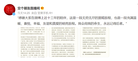 罗永浩微博账号名已经改为“交个朋友直播间”
