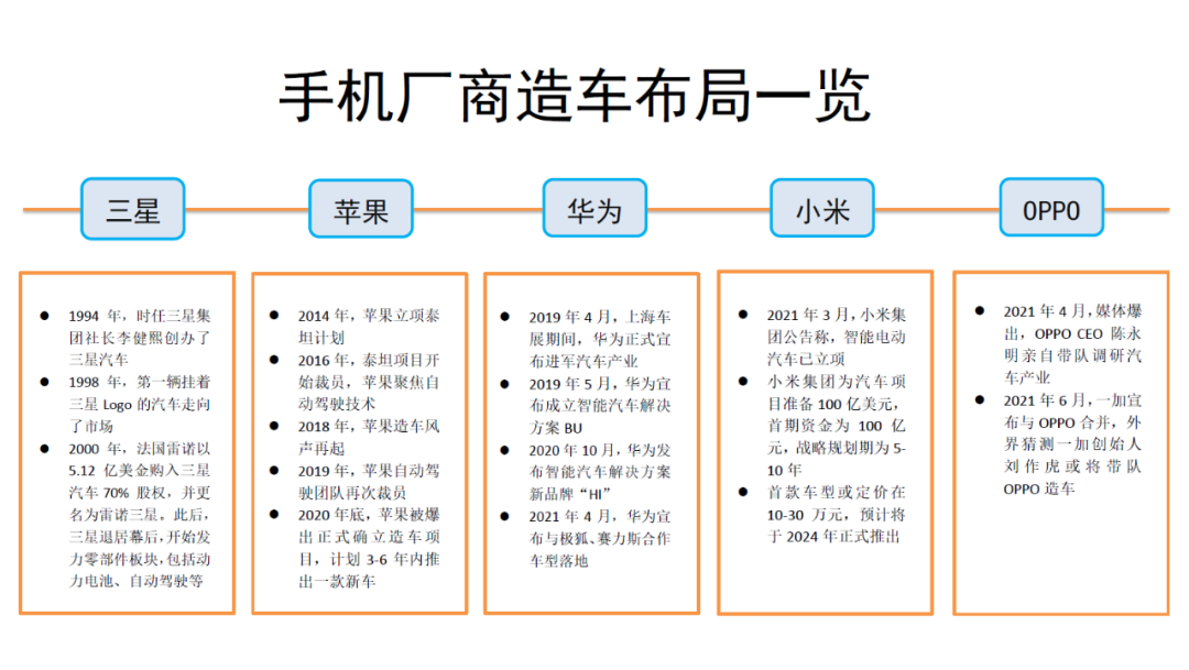 如今小米已经正式官宣造车,vivo也公布了自动驾驶相关专利,OPPO、DJI都曾经有过造车传闻,苹果造车的曝光也断断续续传了好几年。