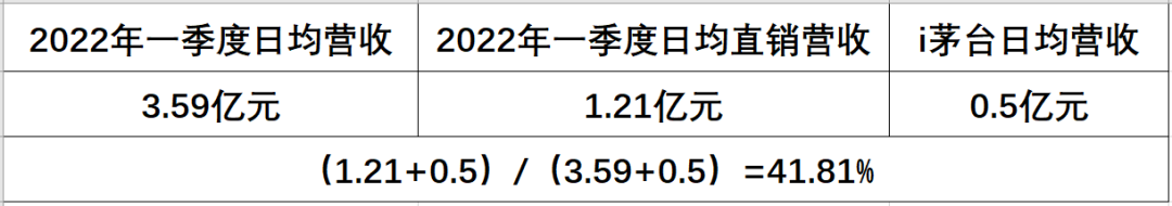 如果以贵州茅台2022年一季度的日均营业数据为参考进行计算,假设i茅台销售额为一季度额外增加的直销收入且不影响原本收入,那么贵州茅台的直销占比或将达到41.81%。当然,受限于消费需求、产能限制、市场波动等客观因素,该数据只能作为当前阶段理想状态的参考。