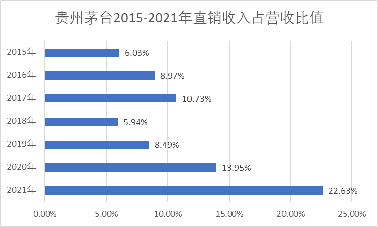 而直销收入占营收比值方面,在2018年出现回落之后,持续呈现高速增长,在2021年达到了22.63%。
