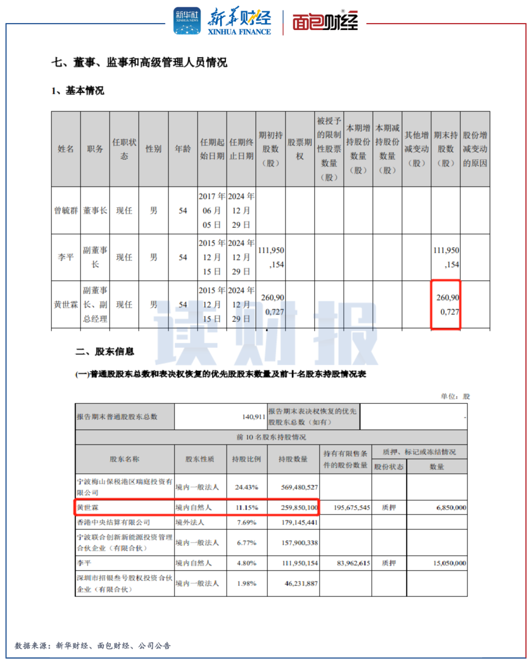图2:2021年年报及2022年一季报披露黄世霖持股情况
