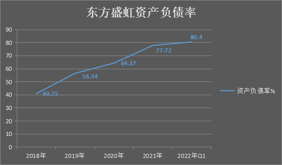 而有息负债2018年至2021年由73.09亿元增加至730.09亿元,增长幅度翻近10倍。同期内,东方盛虹的资产债率连年攀升,分别为40.75%、56.34%、64.17%,77.72%。到了2022年一季度,其资产负债率已经上升到80.4%。