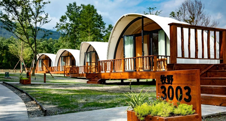 同时,彭州市提出“以民宿点亮乡村,用艺术对话世界”的民宿集群发展构想,打造龙门山民宿等独具特色的民宿品牌。先后成功引进成都龙之梦旅游度假区、龙门山熊猫生态谷等21个总投资556.2亿元的重大产业化项目,逐步营造天彭门、止马岛、蔡家山等湔江河谷“十大场景”;现已拥有白鹿音乐旅游景区等3个国家4A级旅游景区、宝山旅游度假区等2个省级旅游度假区;连续举办4届龙门山民宿发展大会,成立“民宿产业生态联盟”、民宿学院,吸引浮云牧场、大乐之野等12个全国知名民宿品牌入驻,打造露营地20处,建成特色民宿47家。无所事事民宿获评天府旅游名宿,半盏山房、果徕咖啡庄园等3家民宿获评成都市首批精品民宿,持续推动龙门山民宿品牌建设。