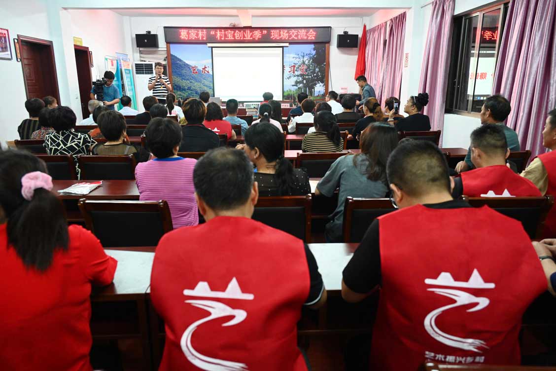 作为一个曾经是青壮年外出务工、老弱妇孺在家留守的“空心村”,葛家村从2019年开始,迎来了“艺术振兴乡村”,邀请中国人民大学艺术系副教授丛志强驻村,正式拉开了一场“艺术试验”的序幕。第一个三年,葛家村从一个无特点、无优势、无潜力的“三无”村庄华丽转身“网红村”。今年5月份,葛家村开启“村宝创业季”项目,依托党建统领,设计赋能共同富裕策略、“艺起富”乡村数字平台和在地化整村运营体系,运用“1+4+X”陪伴式创业的方式,赋能村民家庭创业、整合多户业态资源、构建乡村品牌集群,旨在利用“党建统领+社会设计+数字平台+整村运营”带动村民增收和村集体增收。