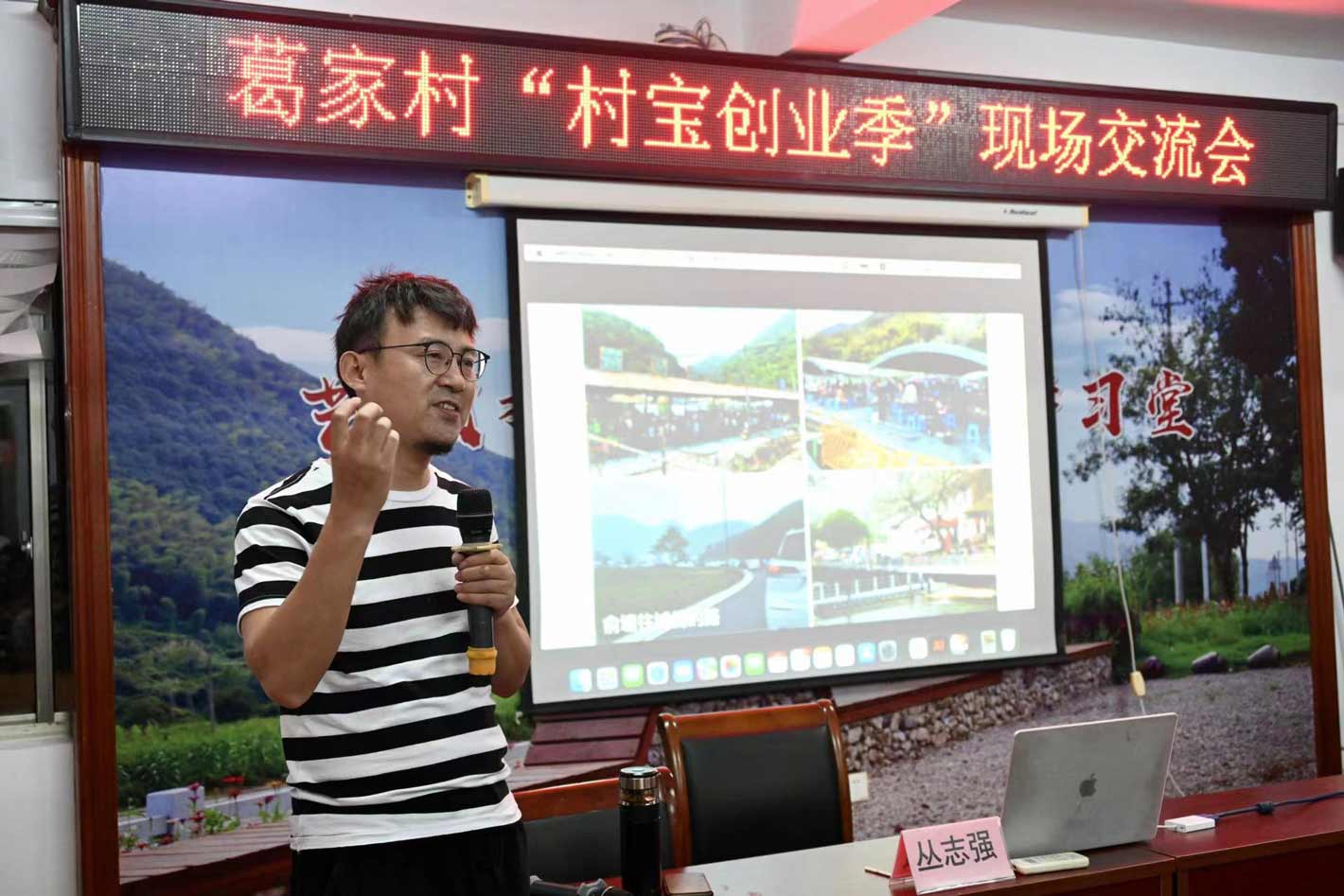 “葛家村已经进入第二个三年,我们的目标是整村运营带动村民和村集体增收。分两步走,第一步利用桂语零号乐园将游客吸引到村;第二步将来村的游客送到创业的家庭……”话合作愿景,绘创业蓝图, 6月14日晚,在宁波市宁海县葛家村文化礼堂,“村宝创业季”动员大会火热开场,50余名“村宝”齐聚一堂,与中国人民大学小裤脚教授丛志强团队共谋创业创新机遇,共话创业发展愿景。