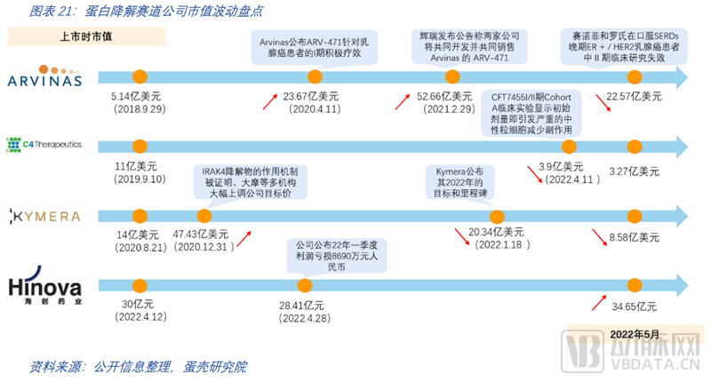国内约有20余家企业开发布局PROTAC,近半国内企业18年前后进入赛道。海创药业是PROTAC赛道上的代表企业并于近期上市。海外有众多企业布局PROTAC,Arvinas、C4、Kymera是处于第一梯队的代表性企业,均已上市。