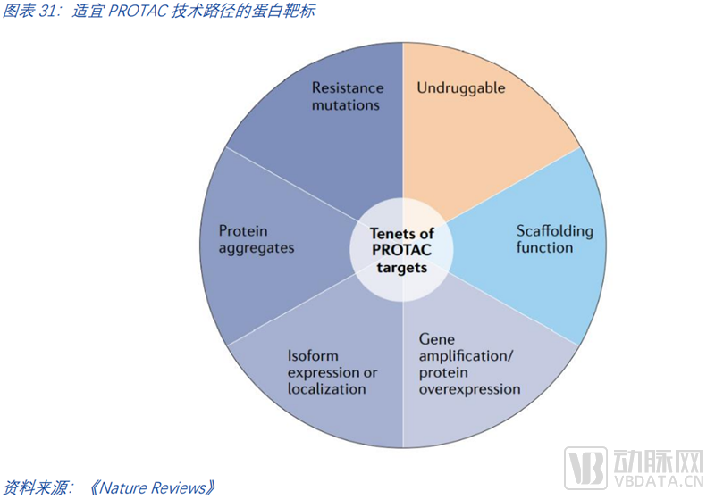 找到最合适的靶点们。合适PROTAC的靶点画像具备的特征可以分为四类。第一类特征是“不可成药”。如前文所述,第一波降解剂的浪潮是那些经典的可成药靶点,在临床中已有充分验证。这些靶点的“PROTAC化”很好的验证了PROTAC模式的有效性,和潜在的优越性(从现在的让蛋白降解和此前的仅是抑制蛋白功能)。而最具前景的未来是在于那些现有技术路径难以成药的靶点。第二类特征蛋白表达偏离自然状态,如过度表达、突变、聚集、异构体表达等等。第三类特征是支架蛋白。第四类特征是该靶点对现有疗法已产生了耐药性。