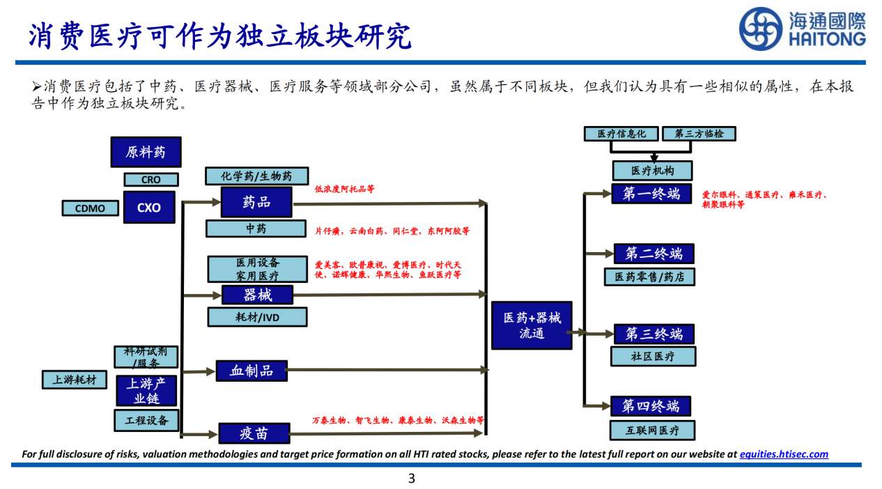 消费医疗包括了中药、医疗器械、医疗服务等领域部分公司,虽然属于不同板块,但具有一些相似的属性,可作为独立板块研究。