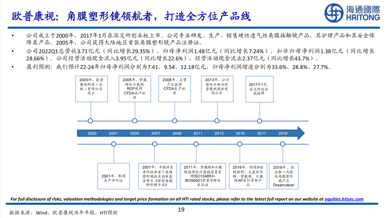 公司成立于2000年,2017年1月在深交所创业板上市。公司专业研发、生产、销售硬性透气性角膜接触镜产品、其护理产品和其安全保障类产品。2005年,公司获得大陆地区首张角膜塑形镜产品注册证。