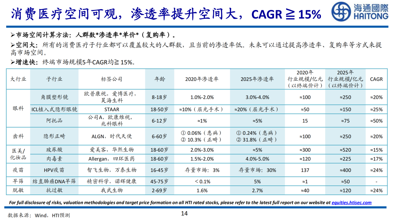 消费医疗空间可观,渗透率提升空间大,CAGR ≧ 15%