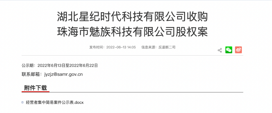 直至这次魅族正式卖身——投资界获悉,国家市场监督管理总局发布湖北星纪时代科技有限公司(简称“星纪时代”)收购珠海市魅族科技有限公司(简称“魅族科技”)股权案案件公示,由李书福执掌的星纪时代拟收购79.09% 股权,入主魅族。