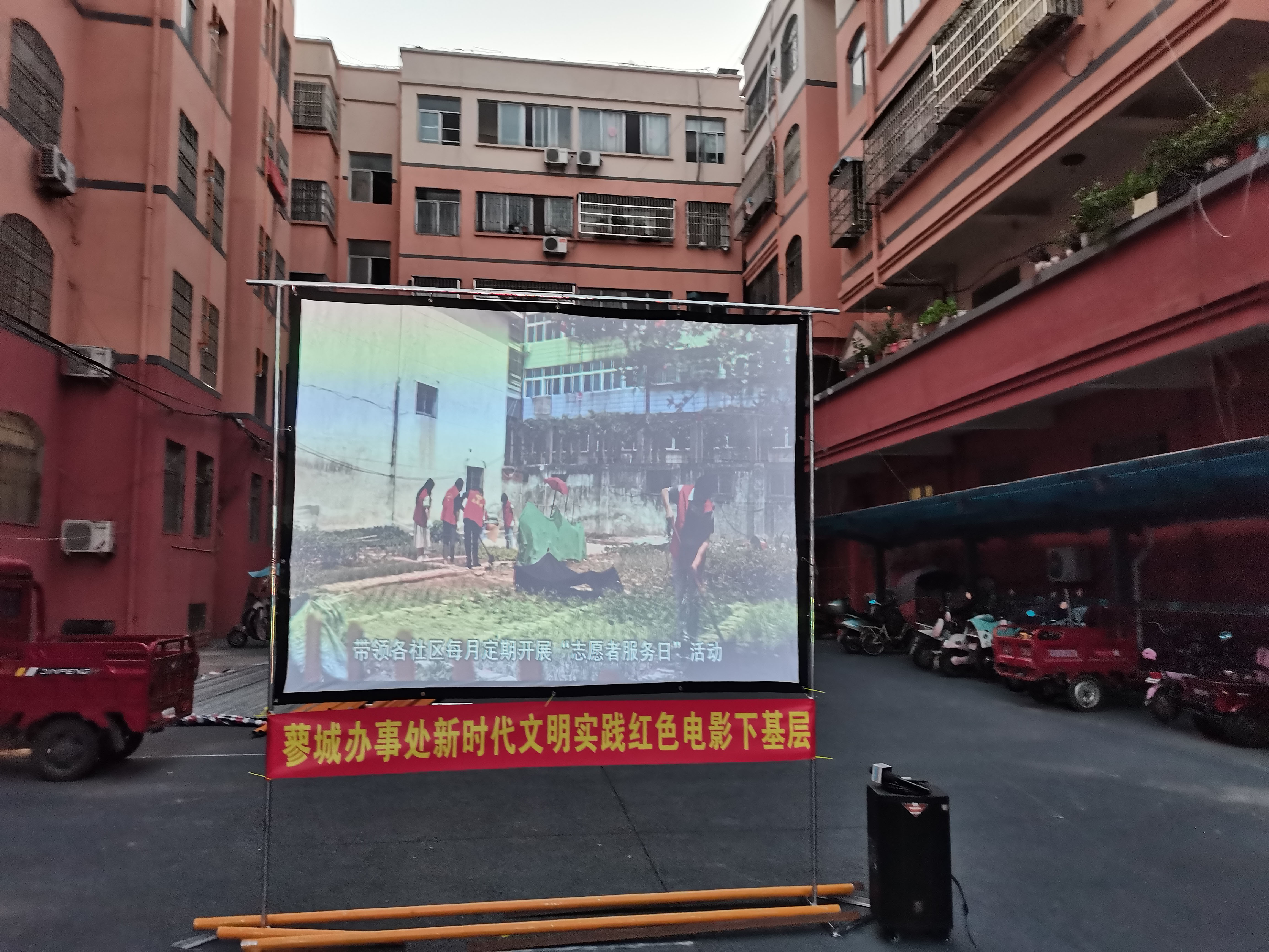 为进一步活跃群众文化生活,建设和谐社区,6月14日晚,蓼城办事处新时代文明实践所到辖区开展红色电影下基层——走进踏月寺社区巡回放映活动,社区组织党员干部、群众志愿者在踏月嘉园小区共同参与了此次活动。