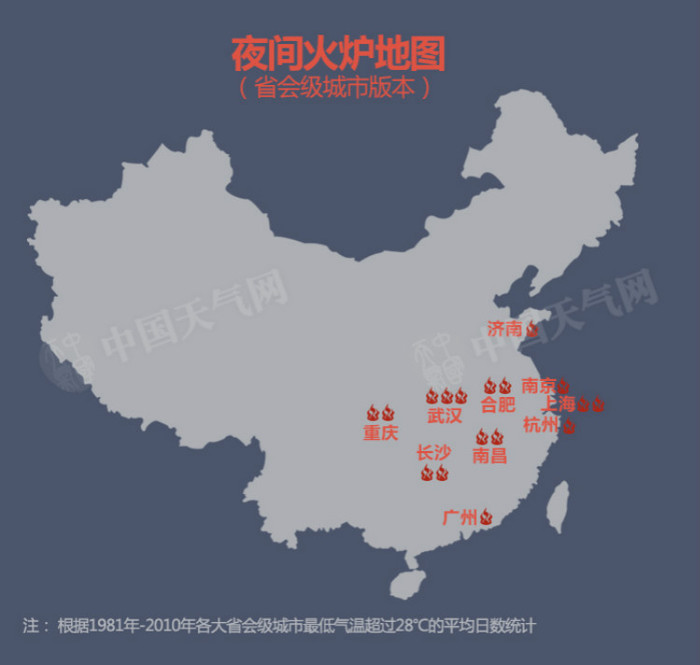 当然了,这仅仅是针对于白天来说的。如果只是白天酷热,夜间恢复清凉,那还算不上彻底的“火炉”,北方大部就是如此。