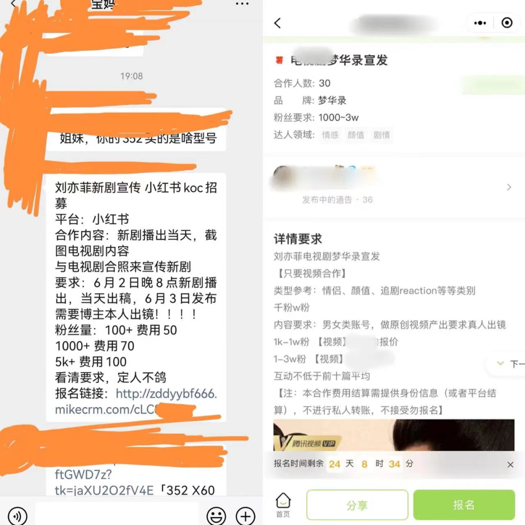 这可能是因为腾讯和抖音去年闹得沸沸扬扬的版权官司,腾讯独播大剧在抖音的播放量都不如从前。《梦华录》这次营销似乎是铆足了劲主攻微博,其他平台快手、B站、小红书为辅,网络有流传疑似小红书招募KOC的消息。