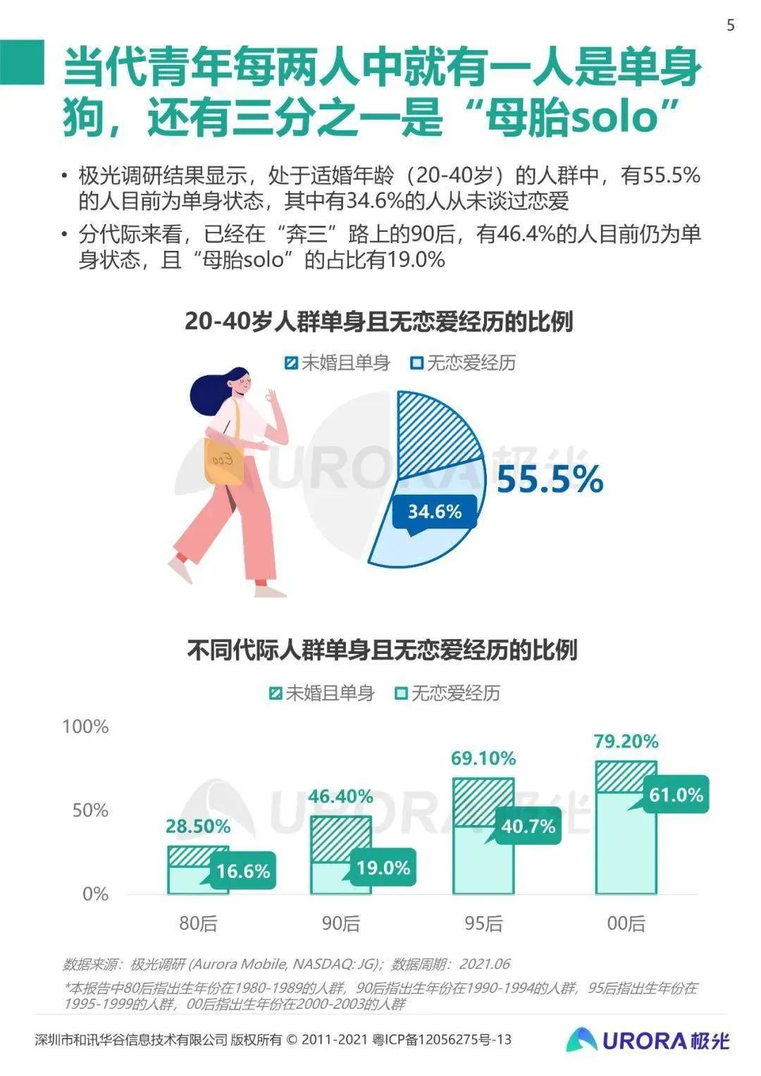 《90婚介所》的改版,或许也是考虑到当下年轻人对嗑CP、学习恋爱经验的需求。极光大数据发布的《2021当代青年婚恋状态研究报告》显示,20-40岁的人群中,有55.5%的人目前为止为单身状态,其中34.6%的人无恋爱经历。这一数据也许说明了促成高效相亲、提供恋爱经验成为了恋综更主要的价值,从而影响B站做出了内容的改版调整。