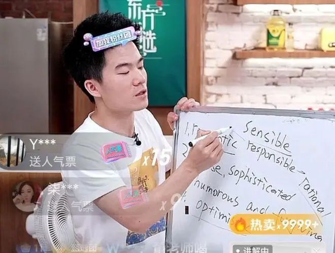 此外,他在直播时还时常补充英语单词,和网友谈天说地,从苏东坡聊到莎士比亚,时不时还感慨两句自己的人生感悟,文化氛围感满满。东方甄选的其他主播们也都有各自的直播风格,与网上那些撕心裂肺呐喊的主播完全不同。