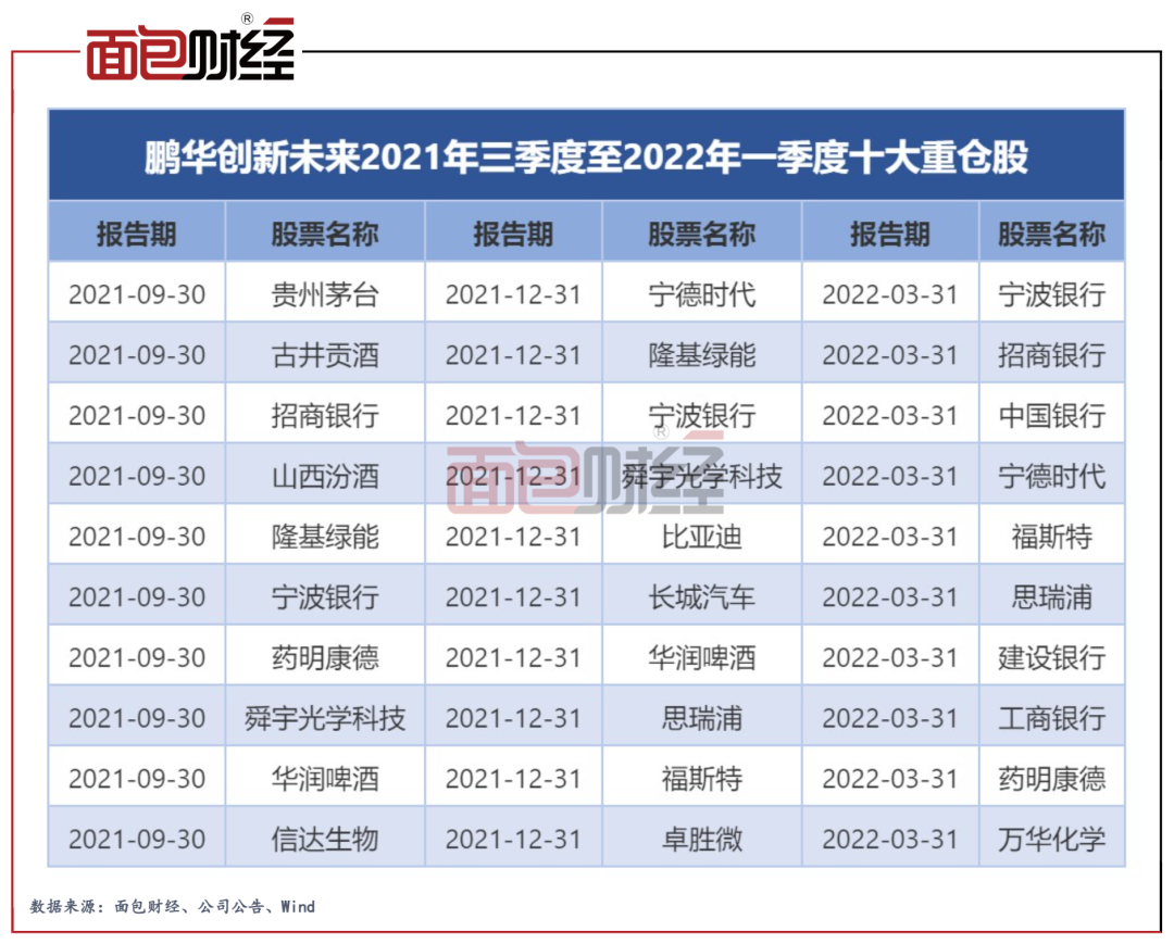 图4:鹏华创新未来2021年三季度至2022年一季度十大重仓股