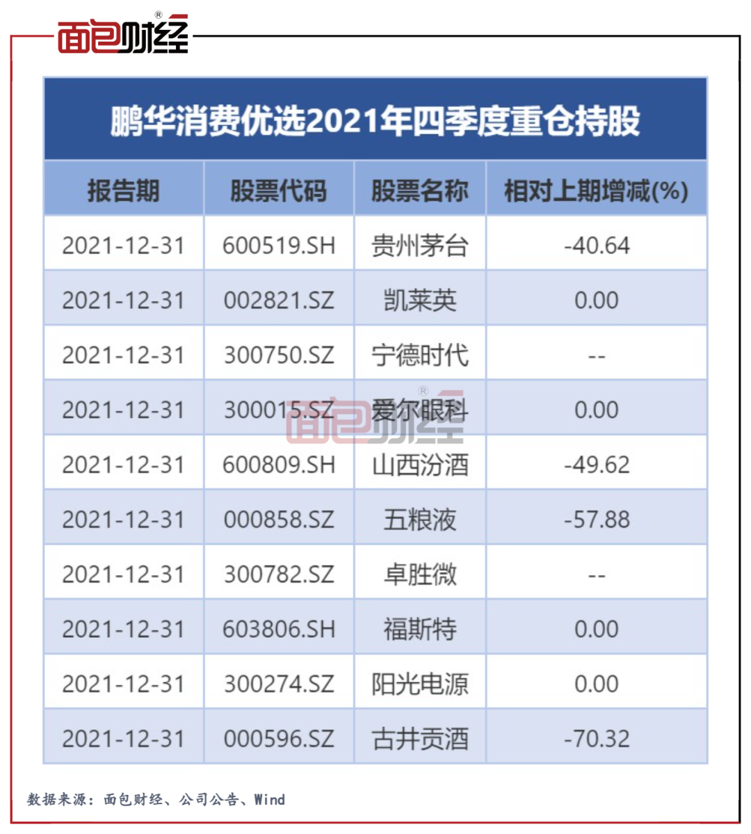 图6:鹏华消费优选2021年四季度重仓持股