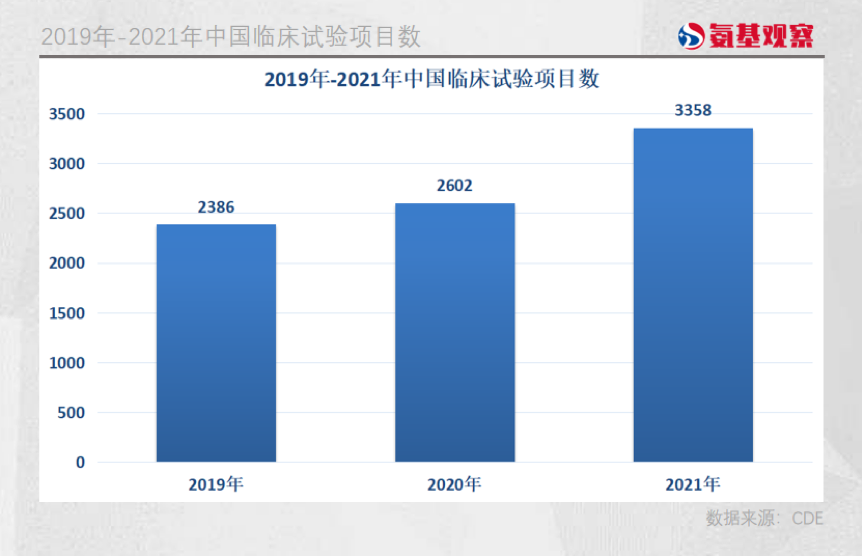 6月8日,CDE刚刚发布《中国新药注册临床试验现状年度报告2021》,2021年我国药物临床试验登记数量首次突破3000项,合计3358项,2020年和2021年登记总量分别同比增加9.1%和29.1%,增速明显加快。