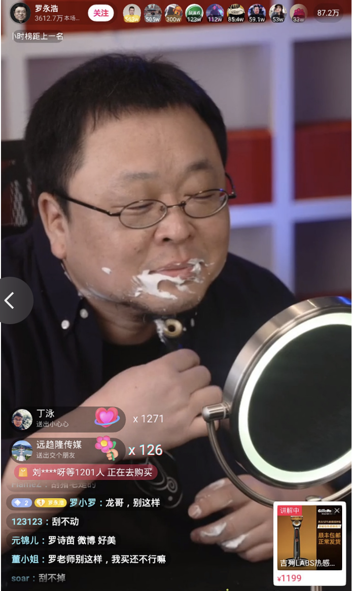 在宣布入驻抖音进行直播带货时,罗永浩曾掀起过一股浪潮,出场即顶流。直播带货首秀当晚,老罗刮掉了自己留了多年的胡子、放下了傲慢,即便是因为业务能力不熟,频频翻车,但因为够努力,首场带货依旧告捷,带出了1.1亿的成绩。一举登顶抖音电商,坐稳了“抖音带货一哥”的位置。