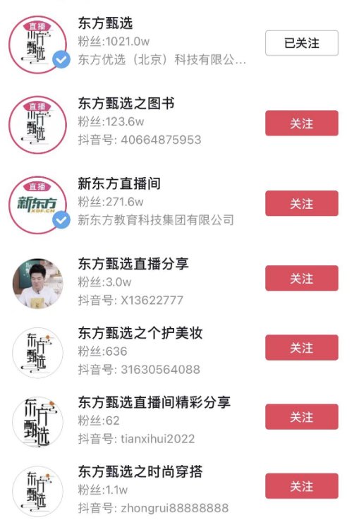 而在销售体系化方面,东方甄选也有了自己的矩阵,先后搭建了东方甄选图书、新东方直播间、东方甄选之时尚穿搭、东方甄选之个护美妆等。