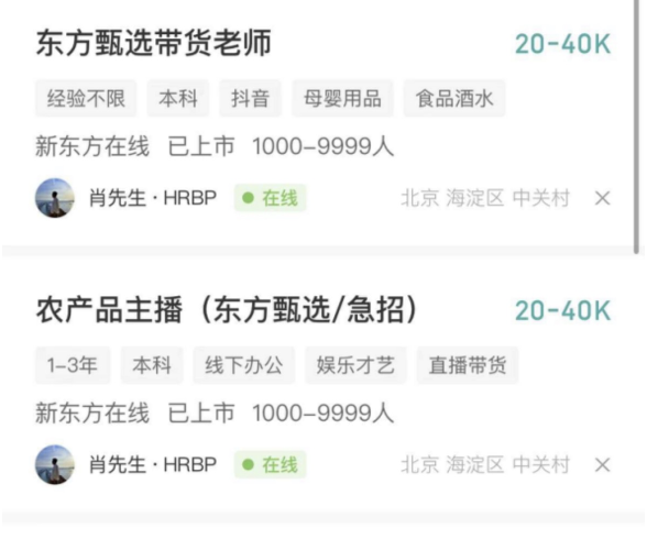 在双语直播爆火、股价攀升后,东方甄选开始趁热打铁。根据boss直聘消息显示,东方甄选正在以月薪2-4万招聘双语带货主播,待遇直接触顶行业。