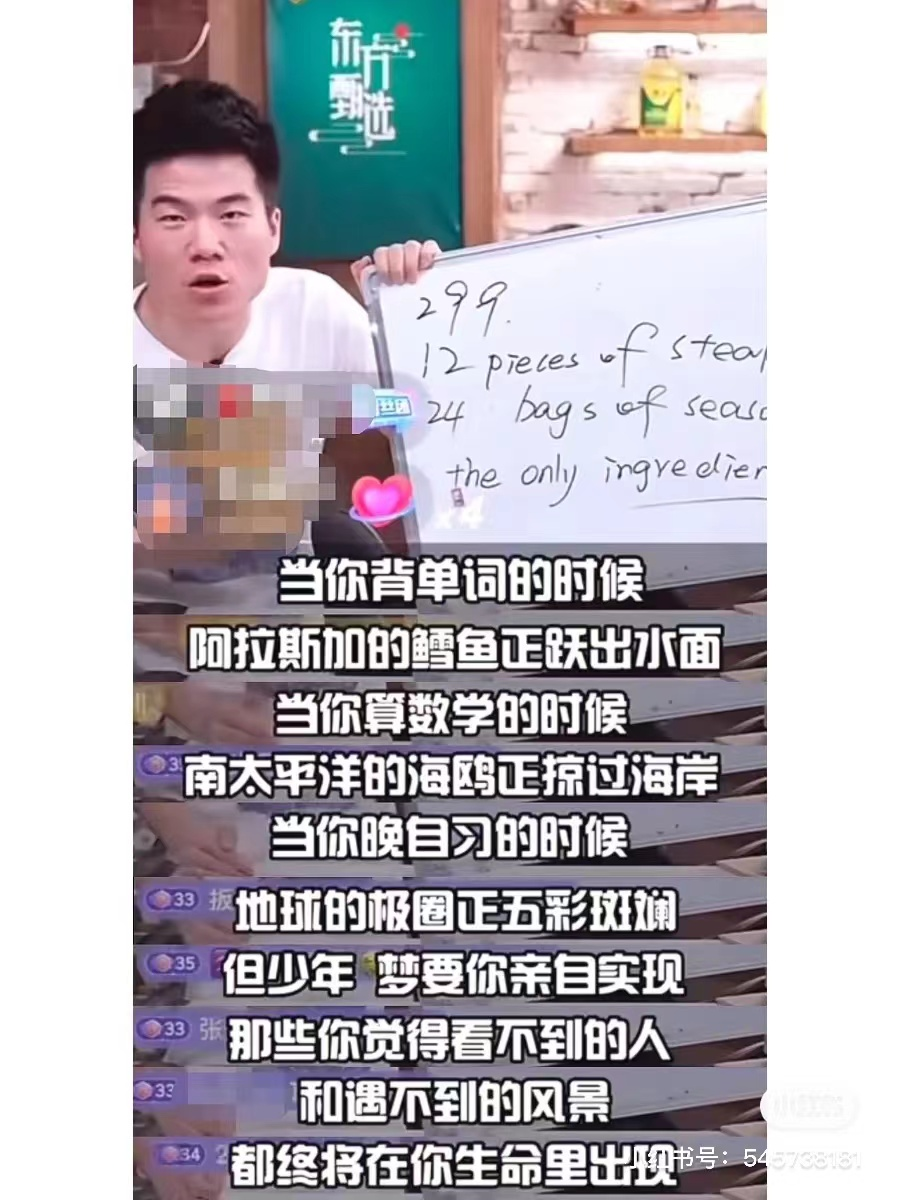 这套独特的教学精髓,也潜移默化传承给了新东方名师们。最近爆火的董宇辉身上,也能看到这两样东西。