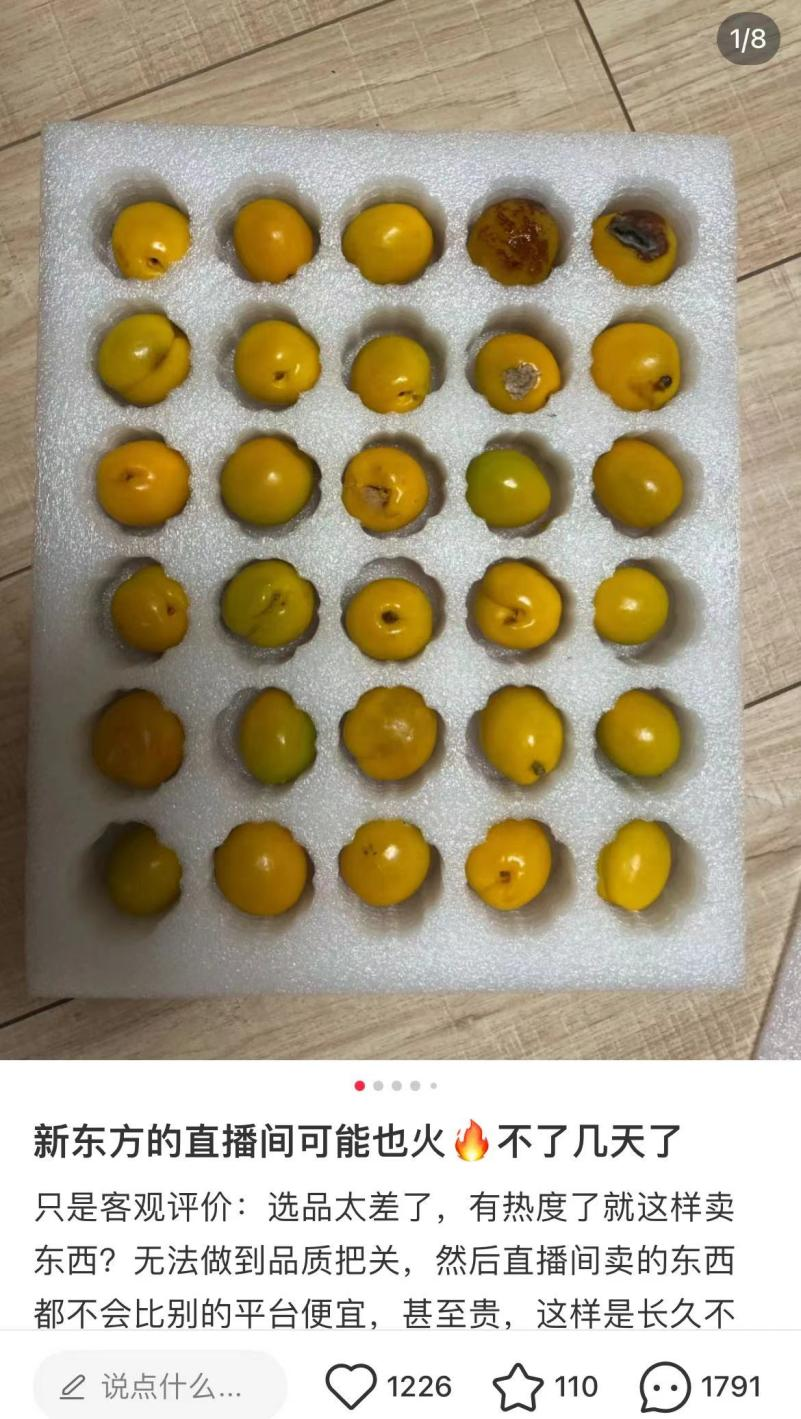 选品单调之外,生鲜产品所致的质量问题也成为了一大隐患。派财经观察到,在小红书上有多位用户晒出了“在东方甄选直播间买到了坏果子,且客服未予处理”的笔记,但在评论区前几条高赞回答,都一致表示,跟新东方老师们没关系,大概是生鲜供应商的锅,也有人理智表示,“直播间看看热闹就好,别真下单。”