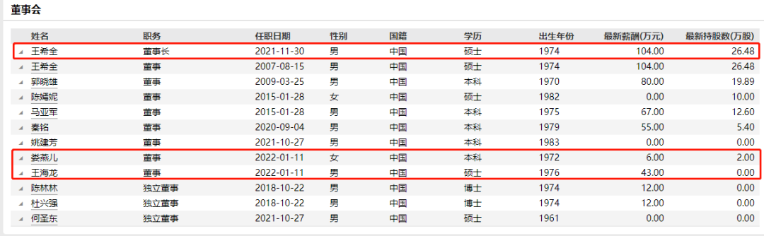 同年11月30日,卧龙地产召开了董事会,选举王希全为公司新任董事长。今年1月11日,娄燕儿、王海龙又被委任为公司董事。资料显示,几位新任职的成员均为卧龙集团的老臣。