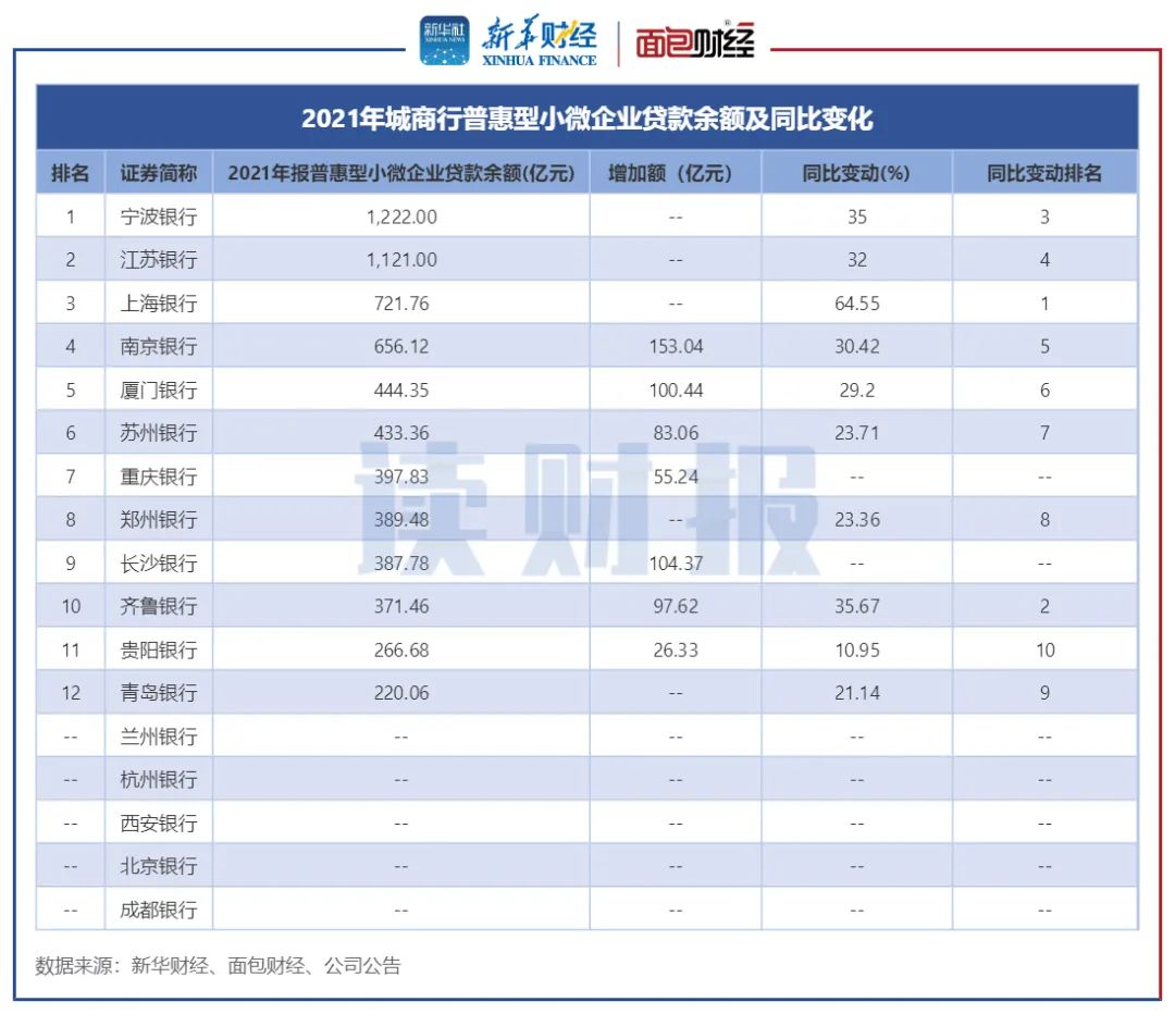 普惠型小微企业贷款:宁波银行余额高,上海银行增速快