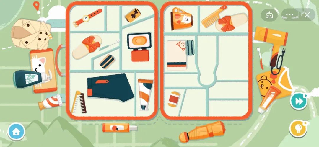 围绕着简单的核心玩法,该游戏在不同的游戏关卡上设计了完全不同的游戏场景。比如女孩儿们的化妆台、奶奶的针线盒、散落的键盘帽、凌乱的书架、出门前的行李箱和贴满小广告的墙面等等。每进入下一个关卡,玩家必须根据场景的变化,找出不同的整理办法,这也是大量玩家天天催着开发者更新更多关卡的原因之一。