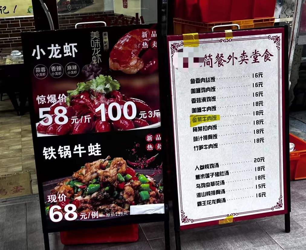 “新鲜小龙虾一斤58元,吃两斤送一斤,吃三斤送两斤”“68元任吃”“58元任吃”……为了活下去,大大小小的小龙虾店打起了惨烈的“价格战”,血拼抢客。