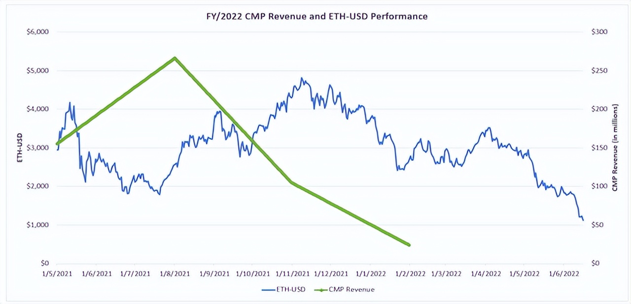 除了即将到来的以太坊区块链合并带来的不利因素外,英伟达最近的 CMP 销售额下降也与加密资产价格表现的恶化相一致。