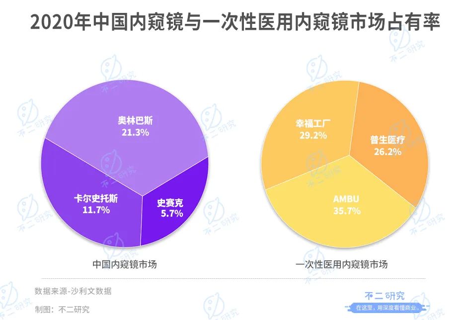 而在新兴的一次性医用内窥镜市场,中国的市场依然被巨头割据,据沙利文数据显示,中国一次性医用内窥镜市场前三大市场从业者分别为Ambu、幸福工厂和普生医疗,市占率分别为35.7%、29.2%、26.2%。