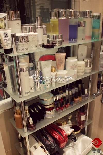 好吧,看完她的化妆品,我对抽屉里那十几只口红的内疚感已经荡然无存……真的是做梦都想跟她一样撸。
