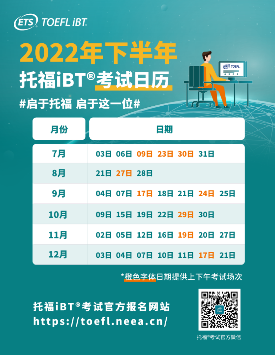 6月17日起,托福考试将新增开放全国范围内下半年考位,包括7月至12月共36个考试日期,涵盖北京、上海、广州、南京等在内39个城市的65个考点。考生可登录教育部教育考试院托福网考报名网站查看相关信息并完成注册报名。
