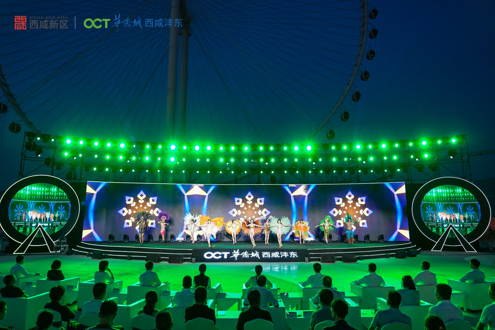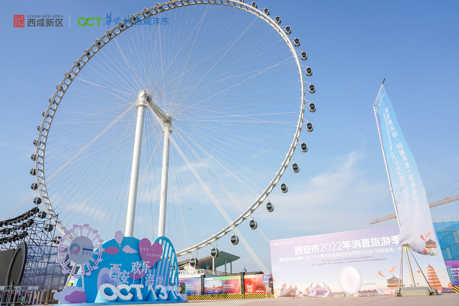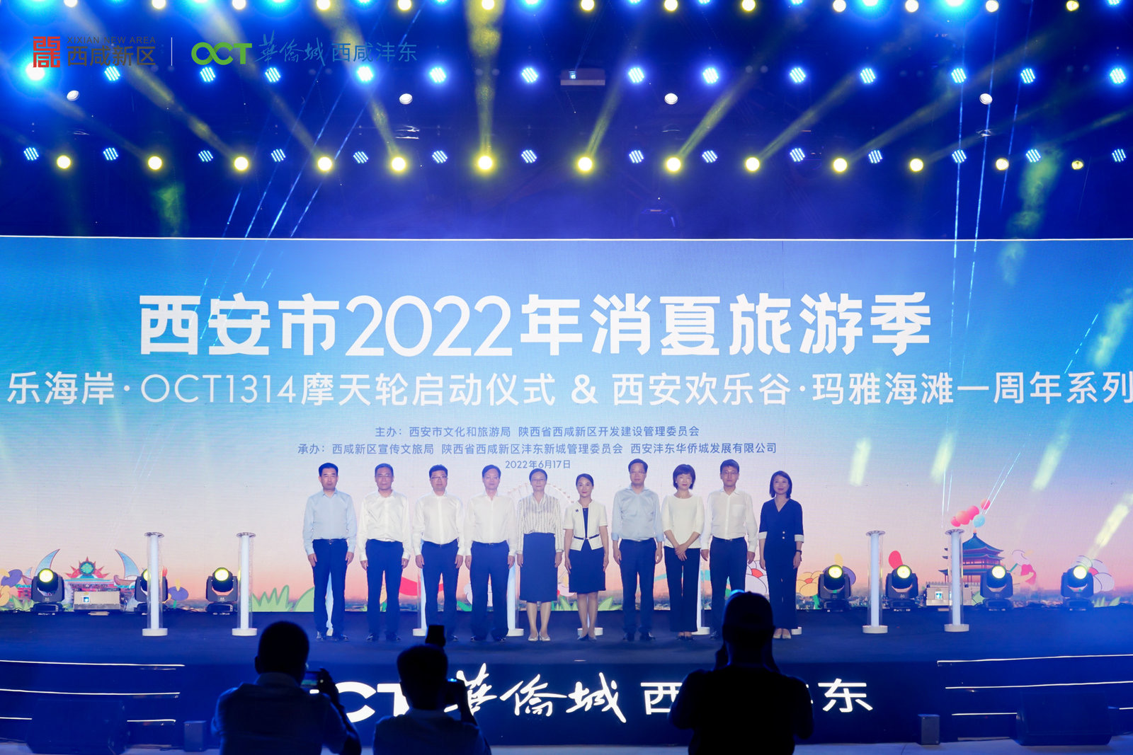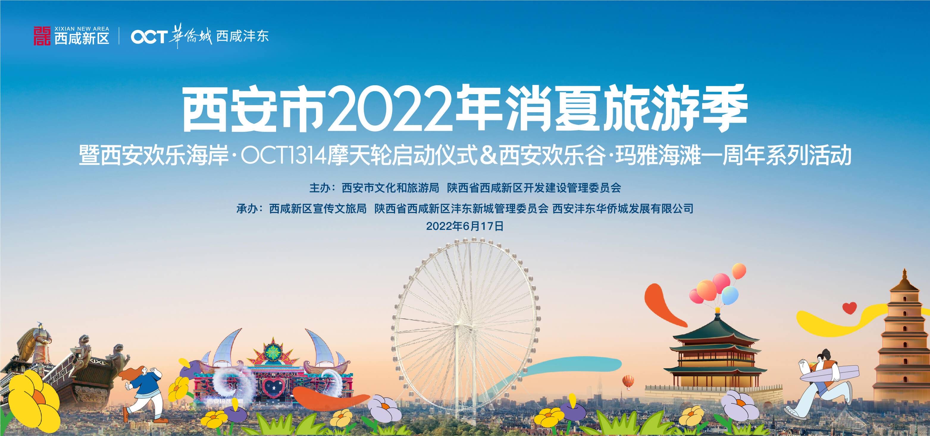6月17日,2022年西安消夏旅游季暨欢乐海岸·OCT1314摩天轮启动仪式在沣东华侨城欢乐海岸摩天轮广场举办。在现场观众和游客的见证下,西北最高摩天轮在光影中被点亮,也标志着西安市消夏旅游季活动正式开启。
