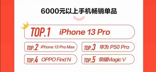 比如安卓折叠屏手机的迅速崛起。此次618开门红期间,在京东6000元以上手机销量排行榜的TOP5机型中,OPPO Find N和荣耀Magic V分别位列第四和第五,仅次于华为P50 Pro。