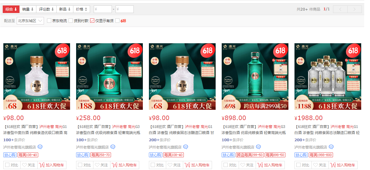 目前,正是一年一度的618大促销时节,公司研究室注意到,这款产品的京东旗舰店上,G1、G2和G3的消费评论依然稀疏,高的200+,少的不足百条。曾有泸州老窖的成都经销商对媒体表示,其有高光产品在售,“但卖得一般,价格定得有点高,跟定位的年轻消费者的需求有差异”。