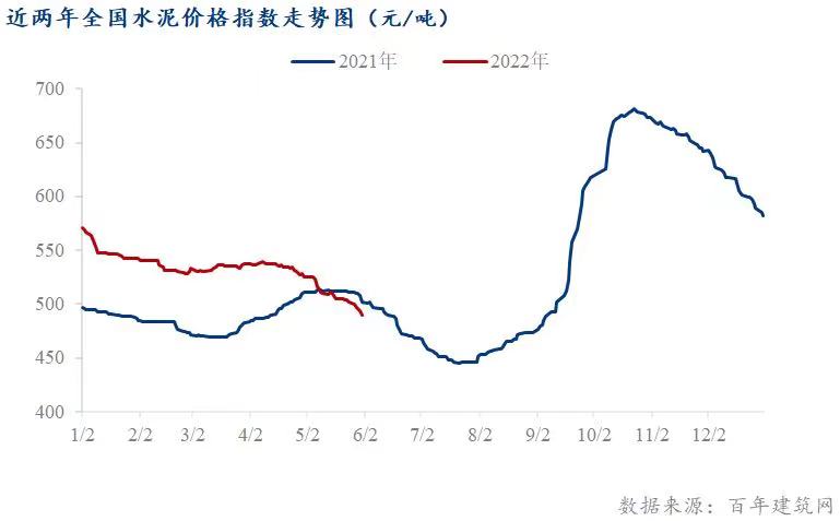 6月17日,百年建筑网水泥价格指数470元/吨,周环比下跌2.32%,同比下跌3.56%。