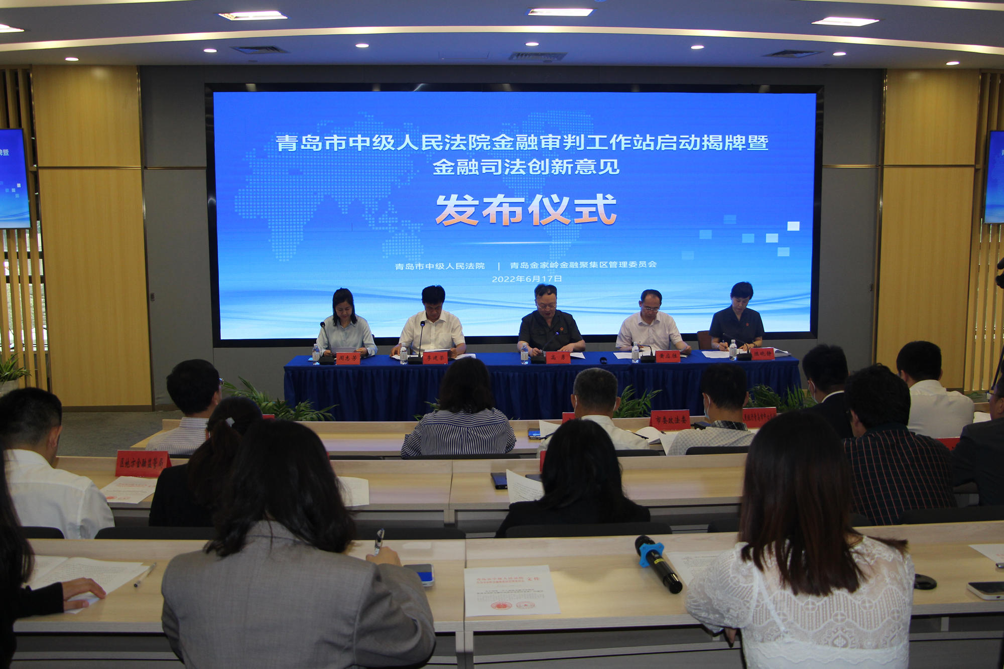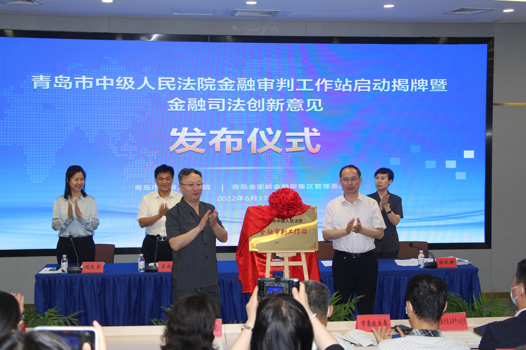 6月17日上午,青岛市中级人民法院、青岛金家岭金融聚集区管理委员会举行了青岛市中级人民法院金融审判工作站启动揭牌暨金融司法创新意见发布仪式。