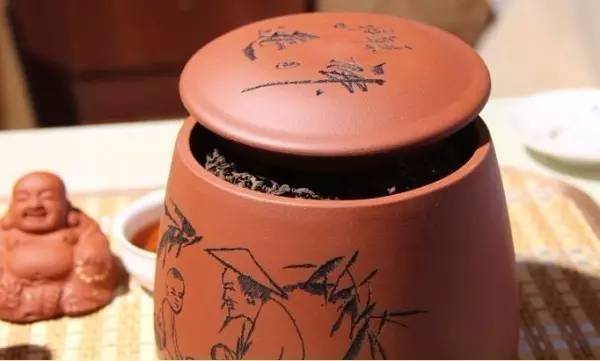 第二种方法也是强力推荐茶友使用的一种方法——罐子存储,陶罐或者紫砂罐都可以,如果有条件,可以准备小罐子,每款茶一个小罐子,把茶饼撬成散块存放在罐子里,既有醒茶的效果,又能防止受潮,罐子口要封起来,避免阳光直射和受潮。