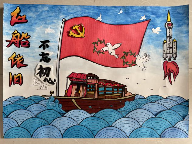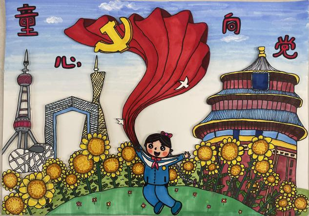 绘画社团学生的一幅幅画作看似稚嫩,但这饱满的色调,灵动的画面,诠释着同学们一颗颗爱党、爱国、爱家之心。