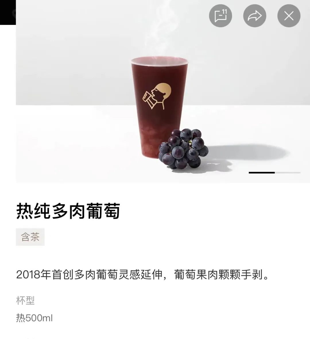 比如喜茶原本售价28元的650ml“多肉葡萄”,去掉芝士奶盖,再换上500ml“标准杯”,摇身变成售价19元的“纯多肉葡萄”新品。如若重新添加“减负”的小料,价格和之前并无明显差别。