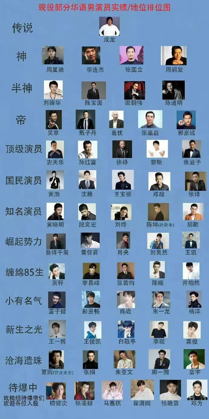 比如这波有人针对演员群体制榜,把华语男演员分为传说、神、半神、帝、顶级演员、国民演员、知名演员、崛起势力、缠绵85生、小有名气、新生之光、沧海遗珠、待爆中等梯度等级,榜单洋洋洒洒列了近50多位艺人,此榜单无疑可帮助影视剧组借衡量角色适配度、片酬预算与演员性价比,从而挑选到合适的演员合作。