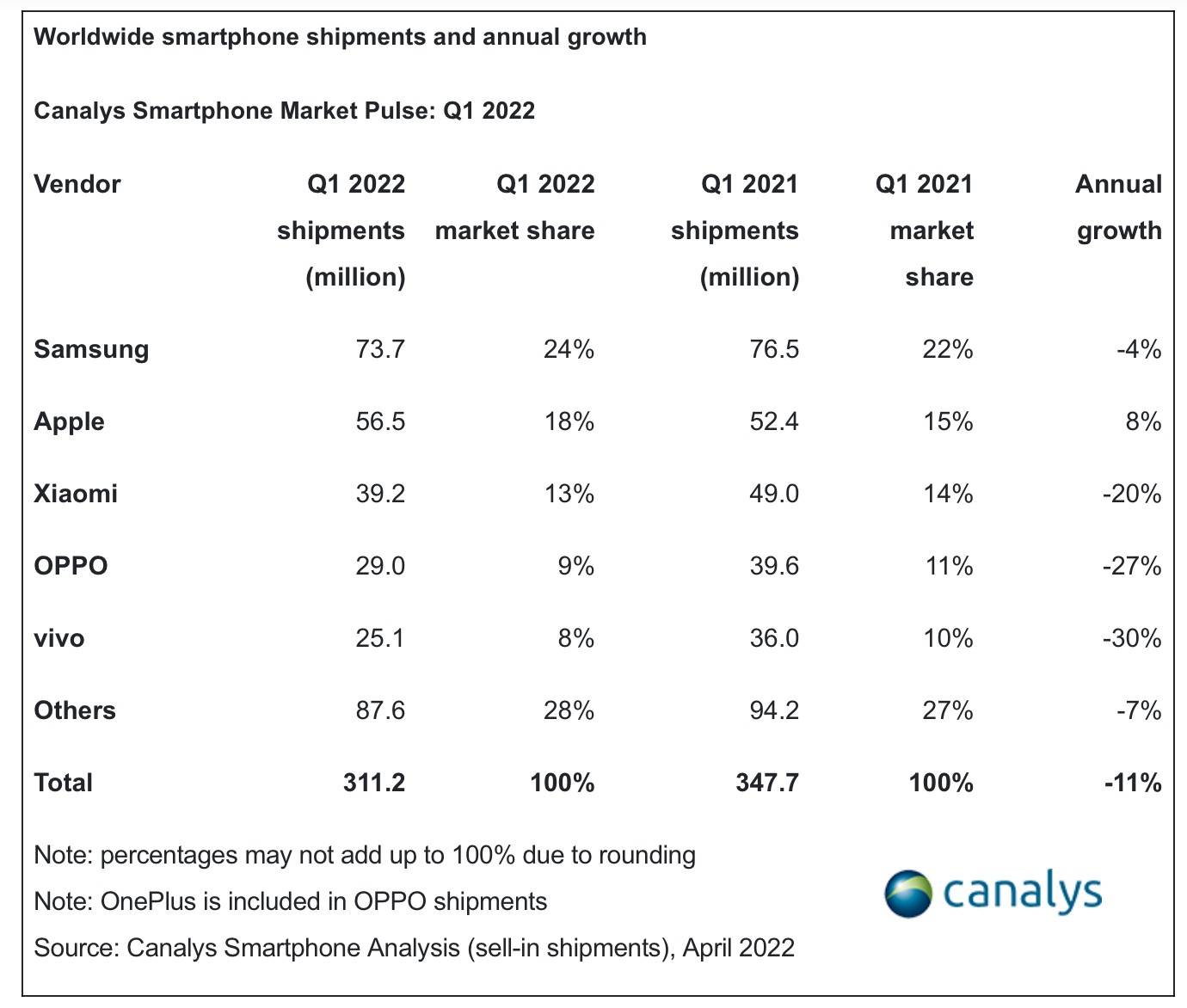 主要是受到疫情影响以及供应链等多重因素,手机出货量下滑,导致小米营收陷入增长困境,营收下降,净利润亏损局面。根据Canalys报告显示,2022年第一季度,全球智能手机出货量达到3.112亿台,同比下降 11%。全球前五大手机厂商中,唯独苹果维持正增长格局。该季度,小米出货量为3920万台,出货量下降两成,与雷军曾声称手机销量三年做到全球第一形成鲜明对比。