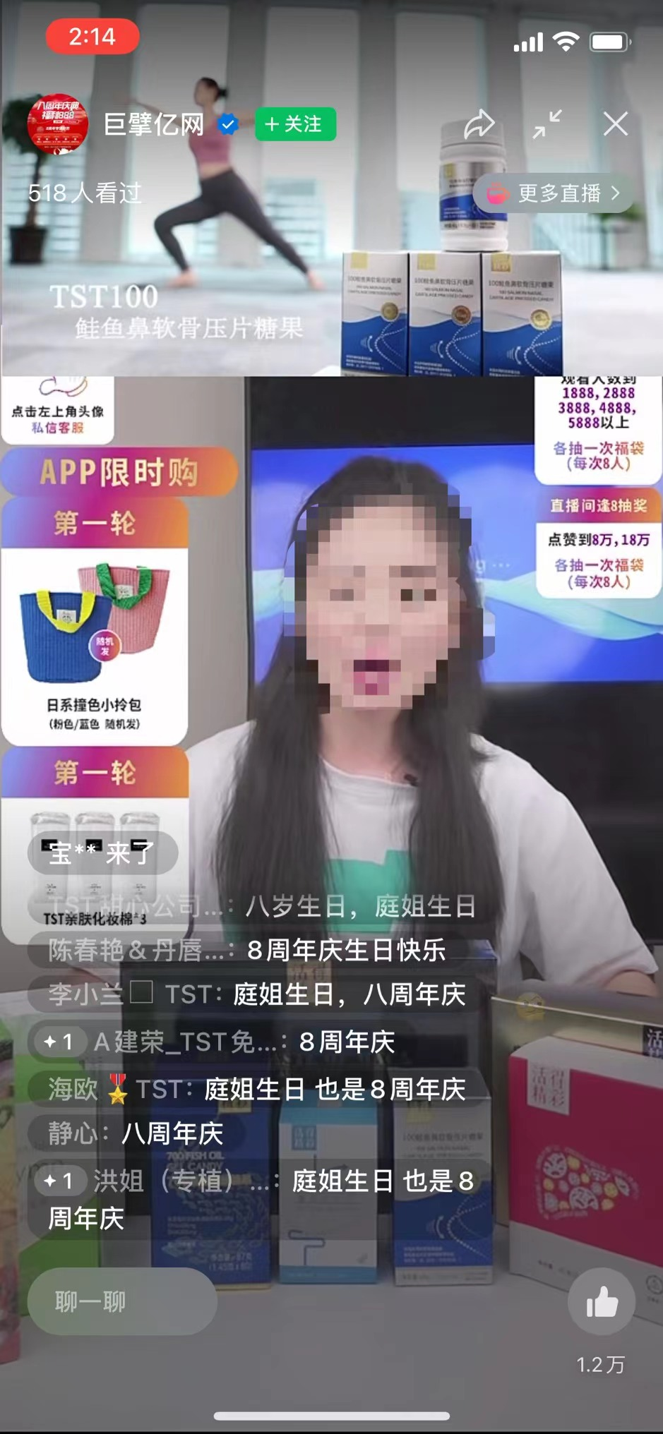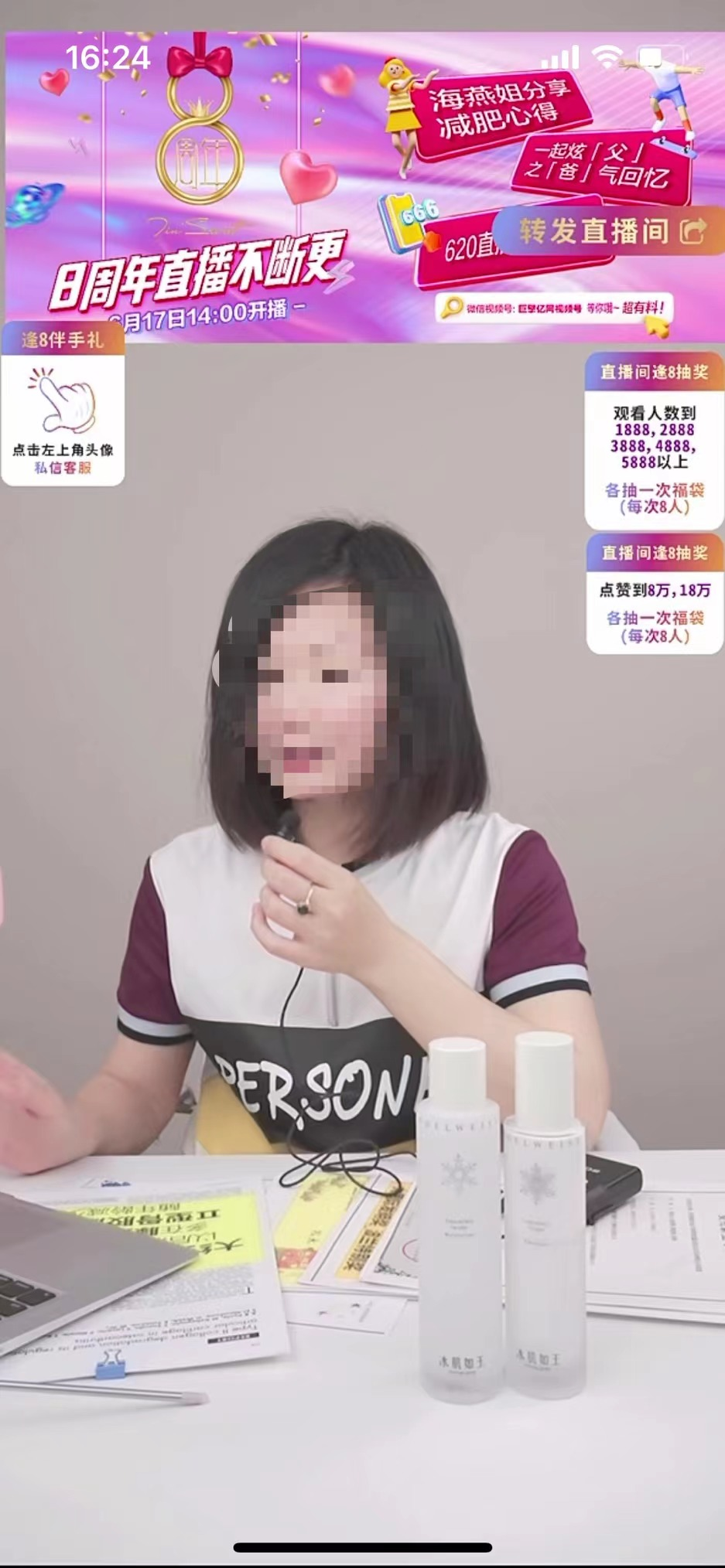 据青眼观察,今天下午的整场直播前后有3位主播出镜,主要是介绍品牌口服产品、护肤品的功效,进行抽奖互动,以及为接下来6月19日炫“父”专场及6月20日八周年庆活动造势。本场直播并未上架任何商品链接,粉丝需要转至TST庭秘密App商城进行购买,目前App商城的八周年活动宣传也十分火热。