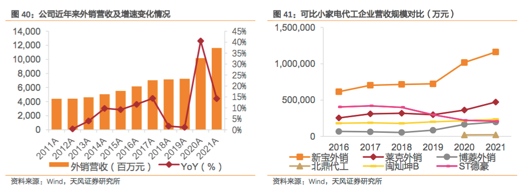 从上图可以看到,相比其他代工企业,新宝股份在生产产品规模大、种类多的情况下,毛利率仍旧保持在较高水平。